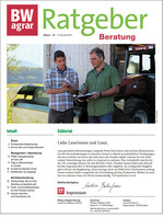 Die Zeiten, in denen Familienbetriebe ihre Entscheidungen alleine gefällt haben, sind vorbei. Bauen, neue Geschäftsfelder, die Antragstellung bei der Zusatz-Rente bis zur Steuererklärung sind so komplex geworden, dass man auf Hilfe von Experten angewiesen ist. Im Ratgeber Beratung, der in der nächsten Ausgabe erscheint, lesen Sie, wie facettenreich Beratung geworden ist und auf welche Angebote Sie zählen können. Immer mehr Anbieter arbeiten im Verbund, um noch schlagkräftiger zu werden. Landesweit lassen sich 61 Beratungsmodule buchen. Ferner geht es im Ratgeber um Bauplanung, Altersvorsorge sowie um Hilfe beim Gemeinsamen Antrag und um Energieberatung. Ein Thema sind auch Pachtflächen, wo man genau rechnen muss.