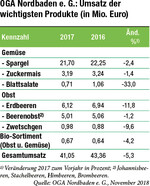 Der Umsatz der Obst- und Gemüse-Absatzgenossenschaft Nordbaden e. G. (OGA), Bruchsal, sank im Geschäftsjahr 2017 um gut fünf Prozent auf 41,05 Mio. Euro. Im laufenden Jahr sieht es tendenziell nicht besser aus. Mit der neuen EU-Förderperiode ab 2019 hofft die Erzeugerorganisation auf einen fairen Wettbewerb gegenüber konkurrierenden Produzenten.