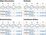 Zum Samstag gibt es verbreitet Nachtfrost und Schneefälle. Tags hält sich meist Bewölkung bei frischem Westwind und maximal 4°C im Rheintal, 3°C im Neckarraum und -1°C auf der Alb. Abends setzen erneut Niederschläge ein mit Schneefall oberhalb von 400 Metern Höhe. Am Sonntag gibt es Nachtfrost in den Hochlagen und am Tag teils anhaltenden Regen. Die Schneefallgrenze steigt, bei starkem Westwind und maximal 8°C im Rheintal, 6°C im Neckarraum und 1°C auf der Alb. Am Montag bringt stark böiger Westwind weitere Niederschläge, die Schneefallgrenze sinkt, bei maximal 7°C in den Ebenen und 0°C auf der Alb. Am Dienstag löst sich die Bewölkung von Westen her und es wird zunehmend sonnig, bei maximal 6°C in den Ebenen und -1°C auf der Alb. Die...