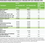 Nach den amtlichen Statistiken wurden am 3. November 2018 in Baden-Württemberg 956.573 Rinder von den Landwirten des Landes gehalten. Gegenüber der vergleichbaren Erhebung des Vorjahres ist dies laut Statistischem Landesamt ein Rückgang um rund 20.000 Rinder oder 2,1 Prozent (siehe Tabelle). Der Bestandsrückgang beruht im Wesentlichen auf Abnahmen bei den Kühen insgesamt und Rindern ab einem Alter von einem Jahr. Kälber- und Jungrinderbestände bis zu einem Alter von einem Jahr verzeichnen dagegen keine Veränderungen im Vergleich zum Vorjahr. Die Zahl der badenwürttembergischen Rinderhaltungen beziffert sich auf 15.800, ein Rückgang binnen Jahresfrist um 3,7 Prozent. Davon sank die Zahl der Milchviehhalter um 5,7 Prozent auf 6670 Betriebe....