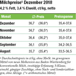 Der BWagrar-Milchpreis ist im Dezember gegenüber November mit 36,7 Cent pro kg konstant geblieben. Der Preis für Biomilch ging leicht um 0,1 Cent auf 48,6 Cent pro kg zurück. Einbrüche bei der Milchanlieferung wegen der Dürre im Sommer hat es bislang keine gegeben. Noch gibt es genügend Futtervorräte auf den Betrieben. Nach Angaben der ZMB/AMI ist die Milchanlieferung an die deutschen Molkereien Ende 2018 jedoch etwas schwächer angestiegen als im Vorjahr um die gleiche Zeit. Laut Schnellberichterstattung der ZMB hat die Milchmenge in 51. Woche um 1,0 Prozent zugenommen. Das Vorjahresniveau wurde um 2,2 Prozent unterschritten. Am Markt für Blockbutter sind feste Tendenzen zu beobachten. An der EEX haben sich Butterkurse für 2019 ebenfalls...