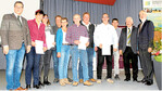 Die Ehrungen mit Urkunde für die Durchführung der Gläsernen Produktion und der Aktion Bauernhofbrunch überreichte Agrarminister Peter Hauk (links) an die teilnehmenden Betriebe auf der Lichtmesstagung in St. Johann-Würtingen (v. l.): Pia Münch; Kornelia und Anton Arnold; Sigrun und Thomas Fritz; Markus Kern; Martin Frech; Martin Rauscher mit dem KBV-Vorsitzenden Gebhard Aierstock und Landrat Thomas Reumann. Nicht auf dem Bild ist Familie Schmauder aus Mehrstetten.