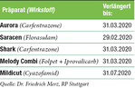 Das Bundesamt für Verbraucherschutz und Lebensmittelsicherheit hat die Zulassung von Pflanzenschutzmitteln, deren Zulassung durch Zeitablauf endete, verlängert. Folgende Zulassungsverlängerungen werden bis zur endgültigen Entscheidung über eine erneute Zulassung erteilt.