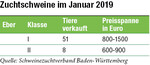 Im Januar bewegte sich der Schweinemarkt mit wenigen Schwankungen, und bei den Schlacht- und Ferkelpreisen nur leicht aufwärts. Die Preise lagen weiter unter dem Niveau des Vorjahres. Die Eberzuchtbetriebe im Land hatten eine ruhige und nicht zufriedenstellende Nachfrage nach Jungebern. Der Export nach Spanien verlief etwas besser, auch mit weiteren Aufträgen für die kommenden Wochen. Dazu stellte die Besamung einige der genomisch selektierten und in „Hektor" und „Matrix" eingestuften Tiere vor. Knapp 60 Jungeber wurden zum Durchschnittspreis von 1150 Euro verkauft. Über drei Viertel der Tiere waren in Klasse I eingestuft. Bei der Deutschen Landrasse gab es im Januar wenig Verkäufe. Der Spitzeneber kam von Tobias Peter in Aach-Linz mit...