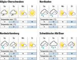 Ein wechselhaftes Wochenende steht bevor: Am Samstag bringt starker Westwind dichte Wolken und Regenschauer. Die Temperaturen liegen bei bis zu 15°C im Rheintal, 16°C im Neckarraum und 9°C auf der Alb. In der Nacht sinkt die Schneefallgrenze unter 1000 Meter Höhe. Der Sonntag bleibt wechselhaft mit Regenschauern, bei abnehmendem Wind und temperaturen von maximal 14°C im Rheintal, 13°C im Neckarraum und 7°C auf der Alb. Am Montag erscheint zunehmend die Sonne. Die Temperaturen steigen auf bis zu 18°C in den Ebenen und bis zu 12°C auf der Alb. Der Dienstag wird meist sonnig bei weiter steigenden Temperaturen. Die Folgetage werden voraussichtlich meist sonnig bis leicht bewölkt bei ähnlichen Temperaturen. | →Das detaillierte...