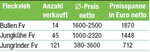 Insgesamt 544 Zucht- und Nutzrinder wechselten an der RBW-Auktion am 25. April den Besitzer. 14 der 18 angebotenen Jungbullen wurden für durchschnittlich 1870 Euro verkauft. Alle Jungbullen wurden am Vortag auf Sprungverhalten und Spermaqualität geprüft, ein in Süddeutschland einmaliger Service für die Käufer. An der Spitze rangierte ein Mahango-Sohn, der 2250 Euro erlöste. Er stammte aus der Zucht der Familie Hagel aus Sulzbach-Laufen, OT Eisenschmiede. Vom gleichen Betrieb kam auch der zweitplatzierte Jungbulle, ein Madness-Sohn, der künftig in Ostfriesland zum Deckeinsatz kommt. Die Preisspitze von 2500 Euro erreichte ein Imperativ-Sohn vom Zuchtbetrieb Wieland, Schwäbisch Hall-Otterbach. Ebenfalls gefragt war ein Hubraum-Sohn aus der...