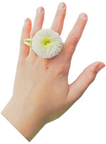 Material: Gänseblümchen mit langem Stengel Und so wird es gemacht: 1. Ein besonders langer Stängel samt Blüte wird am Ende etwa zwei Zentimeter aufgeschlitzt. | 2. Man legt den Stängel um den Arm, so dass der Blütenkopf oben liegt und steckt die Blüte durch den Schlitz. Nach dem gleichen Prinzip wird so aus einem – kürzeren Blütenstiel – ein Fingerring. Nimmt man eine Blüte der Zuchtform Bellis, wird es ein richtig dicker Klunker.