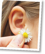 Material: Blüte vom Gänseblümchen und Milchsaft vom Löwenzahnstängel Und so wird es gemacht: 1. Ordentlich Milchsaft vom Stängel des Löwenzahns auf das Ohrläppchen träufeln. | 2. Eine Gänseblümchenblüte auf die Stelle drücken und ein bisschen trocknen lassen. Der Ohrschmuck hält oft bis zum Abend.