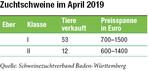 Der Schlachtschweine- und Ferkelmarkt setzte im April seinen Aufschwung fort. Trotz der positiven Impulse stagnierte der Absatz der Zuchtbetriebe in Baden-Württemberg etwas. Export und Verkauf an die Besamungsstationen und Ferkelerzeugung waren eher zurückhaltend. Es liegen aber etliche Bestellungen und Kaufaufträge für die nächste Zeit vor. Der Verkauf lag mit 65 Tieren etwas unter den Zahlen der Vormonate. Davon verließen 30 Tiere Baden-Württemberg. Der Durchschnittspreis betrug 1180 Euro. Bei gleichbleibend hohem Qualitätsniveau und geforderter genomischer Typisierung wurden 53 Jungeber in Klasse I eingestuft und verkauft. Bei der Deutschen Landrasse wurden im April keine Jungeber gehandelt. Bei der Rasse Piétrain waren fleischbetonte...