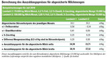 Preis auf der Homepage der Molkerei: Beim Börsenpreis, den der Landwirt im Internet auf der Homepage der Molkerei sieht, sind die Kosten bereits abgezogen. Der Landwirt muss also nur seine Qualitäts- und Mengenstaffeln und S-Zuschlag individuell berechnen lassen (siehe Beispiel in der Tabelle).