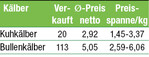 Bei der Kälberauktion m 13. Juni in Herrenberg standen bei bestem Marktwetter 20 weibliche Kälber zum Verkauf. Im Gegensatz zu den Vormonaten war die Nachfrage etwas verhaltener, passt jedoch in die aktuelle Marktlage. Gut mastfähige Kälber um die 80 kg waren besonders gefragt. Bei 76,8 kg Durchschnittsgewicht wurden 225 Euro/Tier oder 2,92 Euro/kg erlöst. Zweigeteilt lief Markt bei den Bullenkälbern. Kälber ohne gültigen maternalen BTV8-Impfschutz erlösten im Mittel 3,97 Euro/kg; uneingeschränkt handelbaren Kälber waren mit 5,16 Euro/kg viel besser bezahlt. Unter dem Strich ergibt sich somit ein Gesamtschnitt von 5,05 Euro/kg bei einem mittleren Gewicht von 84 Kilo. Sehr gefragt waren Kälber um die 90 Kilo, die deutlich über 5 Euro/kg...