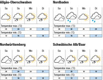 Das Wochenende startet freundlich. Ab Sonntag wird es wechselhaft mit Gewittern. Der Samstag wird bei böigem Wind aus Südwesten zeitweise bewölkt. Die Temperaturen liegen bei bis zu 26°C im Rheintal, 27°C im Neckarraum und 22°C auf der Alb. Am Sonntag ziehen aus Südwesten teilweise heftige Gewitter mit Sturmböen auf. Das Thermometer zeigt maximal 22°C im Rheintal, 24°C im Neckarraum und 20°C auf der Alb. Der Montag wird wechselhaft mit lokalen, teils gewittrigen Schauern, bei bis zu 25°C in den Ebenen und 19°C auf der Alb. Am Dienstag muss vor allem in Hochlagen mit einigen Gewittern gerechnet werden. Die Temperaturen erreichen bis zu 24°C in den Ebenen und 16°C auf der Alb. In den Folgetagen nimmt die Schauerneigung, bei ähnlichen...