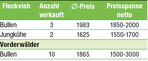 Die Auktion der Rassen Fleckvieh und Vorderwälder am 11. November verlief sehr zufriedenstellend. Die Verkäufer konnten fast alle Tiere zu guten Preisen verkaufen und die Käufer erhielten eine hochwertige Zuchtqualität. Zum Verkauf kamen vier Fleckviehbullen und zwei Jungkühe. Körsieger wurde ein genonisch untersuchter Dream-Sohn aus der Zucht der Familie Schelkle aus Mieterkingen. Beide Jungkühe stammten aus dem Aufzuchtbetrieb Stefan Scheu aus Blumegg. Die Vanagi- und Mupfel-Tochter fanden flott einen neuen Besitzer. Bei den Vorderwäldern wurden zehn Bullen aufgetrieben. Neun davon haben die Bullenprüfstation in Göschweiler durchlaufen. Der Bulle Gigior P wurde als Testbulle ausgewählt. Als Körsieger kommt er für 3000 Euro nach...