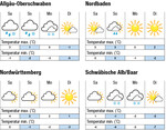 Der Samstag wird nach nächtlichem Frost und leichten Schneefällen in Hochlagen sonnig bis leicht bewölkt, bei bis zu 5 °C in den Ebenen und 2 °C auf der Alb. Der Sonntag wird nach verbreitet leichtem Frost leicht bis mässig bewölkt mit lokalen Niederschlägen und Schnee in Hochlagen, bei bis zu 3 °C in den Ebenen und 0 °C auf der Schwäbischen Alb. Am Montag wird es nach leichtem Nachtfrost bis in die Ebenen wieder freundlicher, bei bis zu 3 °C in den Ebenen und -2 °C auf der Alb. Der Dienstag wird voraussichtlich meist sonnig, bei maximal 2 °C in den Ebenen und -3 °C auf der Alb. Die Folgetage bleiben voraussichtlich sonnig bei leicht ansteigenden Temperaturen. | →Das detaillierte Agrarwetter für Ihre Region finden Sie auf unserer...