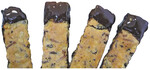 4 Eier, 2 EL warmes Wasser, 200 g Zucker, 1 Vanillezucker, ½ TL Zimt, 250 g Mehl, 100 g gehackte Mandeln, 100 g gehackte Walnüsse, 150 g Rosinen, 100 g Korinthen, 2 00 g Schokostreusel/ Schokoblättchen; Glasur
