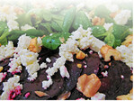350 g Rote Bete | 25 g Walnüsse | 5 EL Olivenöl | 4 EL weißer Balsamicoessig 1 EL flüssiger Honig | Salz, Pfeffer | 50 g Ackersalat | 75 g Schafskäse (alternativ Parmesan)