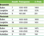 Die Rinderunion Baden-Württemberg (RBW) veranstaltete die erste Zuchtviehauktion 2020 in Bad Waldsee am 15. Januar. Braunvieh: Fast komplett geräumt wurde das große Angebot an Braunviehbullen. Der gefragteste Bulle war ein Axoy-Sohn aus der Zucht der Familie Böhler, Kirchdorf, dessen Mutter mit 85 Punkten eingestuft war. Der Bulle erlöste 1600 Euro. Gleich zu Beginn erzielte eine Harley-Tochter von Arthur Ulrich, Essingen, bei 34 Kilogramm (kg) Marktgemelk 1800 Euro. Fleckvieh: Körsieger bei den Fleckviehbullen wurde ein Zazu-Sohn aus einer Hutera- Bullenmutter von Alfred Berger aus Mieterkingen. Das große Angebot der Fleckviehjungkühe war von hervorragender Qualität. Mit sehr viel Typ und bei 30,4 kg Milch im Durchschnitt enorm...