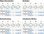 Am Samstag frischt der Wind rasch auf, lokal muss mit Sturmböen gerechnet werden. Es wird meist bewölkt sein mit Niederschlägen. Zeitweise ist es freundlicher, bei Temperaturen bis zu 16°C in den Ebenen und 10°C auf der Alb. Der Sonntag bleibt nach leichtem Frost in Hochlagen wechselhaft mit teils anhaltenden Niederschlägen. In den Hochlagen gibt es Schnee, der Wind hält an. Die Temperaturen steigen auf bis zu 11°C in den Ebenen und 6°C auf der Alb. Der Montag wird mäßig bewölkt mit lokalen Regenschauern. Der Wind lässt nach. Die Temperaturen liegen bei bis zu 13°C in den Ebenen und 7°C auf der Alb. Der Dienstag bleibt voraussichtlich mäßig bewölkt mit einigen Schauern und Schnee in den Hochlagen. Das Thermometer zeigt bis zu 8°C in den...