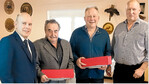 Auf der Generalversammlung des Vereins für landwirtschaftliche Fachbildung (vlf) im Kreis Karlsruhe Ende Januar in Heidelsheim ehrten Vorsitzender Pius Brecht (r.) und Geschäftsführer Dr. Ulrich Kraft (l.) die Landwirte Erich Glöckler aus Oberderdingen (2. v. l.) und Friedrich Holstein aus Bretten-Ruit für ihr jahrzehntelanges Engagement im vlf mit der Silberen Ehrennadel sowie dem Majolikateller des Vereins.