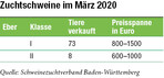 Die Vermarktung von Schlachtschweinen und Ferkeln lief im März weiterhin gut bei stabil hohen Ferkelpreisen. Die Verkaufszahlen der Eberzüchter in Baden-Württemberg waren eher durchwachsen. Die Kaufzurückhaltung bei der Besamung wurde durch die bessere Nachfrage beim Export einigermaßen wettgemacht. Es konnten knapp über 80 Jungeber vermarktet werden, das waren hauptsächlich Tiere der Klasse I mit guten genomischen Zuchtwerten. Es gab trotz der Corona-Situation Exporte in andere Bundesländer sowie nach Spanien und Belgien und Österreich. Der Durchschnittspreis aller verkauften Eber lag bei 1240 Euro. Bei der Deutschen Landrasse wurden die Spitzeneber von Klaus und Philipp Benz in Bingen gezüchtet. Die Söhne von Kelte, Bongo und Nolisse...