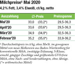 Der BWagrar-Milchpreis für konventionelle Milch ist im Mai gegenüber April nochmals zurückgegangen, um 0,6 Cent pro kg auf durchschnittlich 33,0 Cent pro kg. Das ist zwar ein deutlicher Rückgang, aber kein Einbruch. Insgesamt hielten sich die Preise in Baden-Württemberg im Vergleich zu anderen Regionen noch ziemlich stabil. Wie schwierig die Milchverwertung in Corona-Zeiten bisher war, zeigt der Rückgang des Kieler Rohstoffwertes, der im Mai auf 25,8 Cent pro kg gefallen ist, der tiefste Wert seit Juli 2016. Von dieser Entwicklung eher unbeeindruckt, zeigt sich der Biomilchpreis. Er bleibt weiterhin sehr stabil. Für die kommenden Monate gibt es zunehmend positive Signale. Mit den Lockerungen der Corona-Beschränkungen nimmt der Handel...