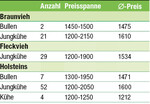 Die zweite Großviehauktion unter der Corona Verordnung am 10. Juni konnte problemlos durchgeführt werden. Ein großes Angebot zog eine sehr gute Nachfrage mit sich. Braunvieh: An der Spitze der Bullen stand aus der Rehm GbR, Ochsenhausen, ein junger Figaro-Sohn, gezogen aus einer Payoff-Bullenmutter. Als Reservesieger ging ein Antonov-Sohn von Helmut Schöllhorn, Ummendorf, hervor. Das größere Angebot bei den Jungkühen wurde mit einer flotten Nachfrage belohnt. Eine Honorom-Tochter von der Kramer GbR, Erolzheim, erlöste 1850 Euro. Eine Cadura-Tochter von Andreas Hörmann, Kirchdorf, erzielte mit 2150 Euro den Tageshöchstpreis. Gebhard Heim, Tettnang, überzeugte mit einer Vito-Tochter mit 30 kg Milch. Fleckvieh: Bei den Jungkühen stach eine...