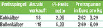 Im Angebot waren am 1. Juli 15 weibliche Kälber, die zügig einen neuen Besitzer fanden. Bei gut 79 kg Gewicht konnten pro Kopf 234 Euro oder 2,96 Euro pro kg erlöst werden. Somit behaupten sich die Kuhkälber auf dem Niveau des Vormonats. Insgesamt waren 118 Bullenkälber im Angebot, womit sich die Stückzahl im Vergleich zum Vormonat deutlich erhöht hat. Das qualitativ gute Angebot konnte vom Markt problemlos aufgenommen werden. Das 81 kg schwere Durchschnittskalb erlöste 5,29 Euro pro kg oder 429 Euro pro Tier. Junge, gut entwickelte Kälber waren besonders gefragt.