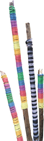 Material: bunte Wollreste Stöcke aller Art Und so wird es gemacht: Das obere Ende des Stockes eng mit Wolle umwickeln. Das Faden- ende festknoten – und schon sind die Blumenstäbe fertig zum Einsatz als bunter Tomatenstab oder einfach so als Dekoration.