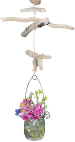 Das Windspiel ist eine hübsche Deko-Idee, die sich auch mit Kindern leicht nachbasteln lässt. An Material wird nur wenig benötigt: Ein paar Stöckchen, Rebdraht und derjenige, der ein Glas anhängen möchte, noch ein Joghurt- oder ein kleines Marmeladenglas. Zuerst werden die Hölzer ungefähr in der Mitte mit einem Bohrer durchbohrt. Das übernehmen entweder Erwachsene mit der Bohrmaschine oder die Kinder mit einem Handbohrer. In welcher Reihenfolge und wie viele Hölzer jetzt aufgefädelt werden, kann jeder nach seinem eigenen Geschmack entscheiden. Um optische Abstände zu erhalten, wird je nach Wunsch zwischen die Hölzer ein Knoten gemacht. Es können alternativ aber auch kleine Perlen oder Muscheln mit Loch aufgefädelt werden. Am unteren Ende...