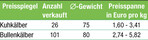 Auf der Auktion am 2. September wurden die 26 weiblichen Kälber problemlos vom Markt aufgenommen. Etwas unter Druck geraten waren lediglich sehr leichte Qualitäten. Unter dem Strich pendelte sich der Preis bei 75 kg bei 2,83 Euro pro kg ein. In der Spitze wurden deutlich über 3 Euro erlöst. Mit 101 Bullenkälbern war das Angebot einigermaßen knapp, jedoch von hoher Qualität und konnte ebenfalls gut vom Markt angenommen werden. Auch hier kamen leichte Bullenkälber unter Druck, jedoch waren Kälber um die 80 kg äußerst gefragt und erreichten Spitzenpreise. Der Durchschnitt pendelte sich bei 80 kg Marktgewicht bei 5,16 Euro pro kg ein.