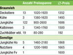 Der erste Septembermarkt der Allgäuer Herdebuchgesellschaft bietet traditionell eine große Auswahl an Zuchttieren, so auch die gut besuchte Auktion am 3. September. Zum Auftrieb gelangten 16 Bullen, drei Kühe, 127 Jungkühe sowie 22 weibliche Zuchtkälber. Bei den Zuchtkälbern wurden 19 Kälber zu einem Durchschnittspreis von 192 Euro zugeschlagen. Den Tageshöchstpreis mit 280 Euro erzielte eine Vanpari-Tochter. Die Nachfrage nach Deckstieren war wieder deutlich besser als bei der letzten Auktion. So konnten 13 Bullen zugeschlagen werden. Den Körsieger stellte Alois Schindele aus Obergünzburg-Ebersbach. Der Anis-Sohn erzielte mit 1920 Euro den Tageshöchstpreis. Der Durchschnittspreis pendelte sich bei 1352 Euro ein. Das umfangreiche Angebot...
