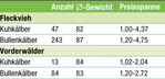 Auf der RBW-Auktion am 4. November standen die Kälberpreise wegen des erneuten Lockdowns unter Druck. Trotzdem konnte das mit 386 Kälbern sehr große Angebot komplett verkauft werden. Die Vorderwälder-Kuhkälber waren in der Qualität gut. Bei den Vorderwälder-Bullenkälbern lief der Verkauf zügig. Ordentlich verlief der Verkauf der Fleckvieh-Kuhkälber. Im Schnitt gab es für die Kälber bei 82 kg 220 Euro. Ein Westpoint-Kalb erlöste den Höchstpreis von 400 Euro. Bei den Fleckvieh-Bullenkälbern spiegelte sich die schwierige Lage am Schlachtviehmarkt wider. Hier mussten Preisabschläge in Kauf genommen werden. Im Mittel erlösten die Kälber 370 Euro.