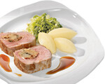 Zutaten 1 - 2 Schweinefilets am Stück (1 x 600 g oder 2 x 300 g), 60 g Allgäuer Emmentaler, 30 g Walnüsse, 30 g getrocknete, eingelegte Tomaten (aus dem Glas), Salz und Pfeffer, Bratöl Zubereitung Schweinefilet von Sehnen befreien (oder vom Metzger sauber pariert). Allgäuer Emmentaler, Walnüsse und getrocknete Tomaten sehr klein würfeln oder hacken. In einer angewärmten Schüssel (im Ofen bei 50 Grad anwärmen) kräftig mit den Händen vermengen und weich kneten. Filet mit einem Kochlöffelstiel mittig längs durchbohren. Die Höhlung von beiden Seiten mit der Einlage füllen. Fleisch in einer Pfanne mit Öl von allen Seiten anbraten. Im auf 120 Grad vorgeheizten Backofen (Umluft) 20 - 30 Minuten fertig garen lassen, dann bei geöffneter Ofentür...