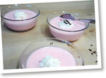 Zubereitung Gelatine im kalten Wasser einweichen; Zutaten schaumig rühren; Gelatine durch Erwärmen auflösen, die Masse in die Gelatine einrühren, in Schälchen abfüllen, kühlen. Vor dem Servieren mit Sahnetupfer und Schokoraspel garnieren. Ohne rote Gelatine ist es eine weiße Creme, die mit Sahnetupfer, Schokostreuseln oder Pistazien verziert werden könnte. Sie können auch nur Joghurt verwenden oder andere Milchprodukten verwenden und Früchte der Jahreszeit einschichten. Zutaten 1/4 l Saure Sahne | 300 g Joghurt, 1 Päckchen Vanillezucker | 65 g Zucker | 1 EL Zitronensaft | 1 EL Rum 1 Blatt rote Gelatine | 3 Blatt normale Gelatine