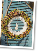 Frisch geschnitten, bieten biegsame Zweige aller Art die Grundlage für gewundene Kränze. Geeignet sind zum Beispiel Wilder Wein, Weiden- oder Haselruten. Bei dieser Kranzart kann man auf Hilfsmittel zur Befestigung verzichten. Wichtig ist, dass die Zweige zeitnah verwendet werden. Denn nur frisch sind sie elastisch und biegsam. Zuerst formt man sich einen kleinen Ring und verschlingt die Zweige ineinander. Je länger die Ranken sind, desto leichter ist die Verarbeitung. Jede weitere Ranke wird immer wieder rundherum gewickelt. Hat man die grobe Unterlage hergestellt, fängt man an Überschneidungen zu wickeln. Hierfür wird genau in die andere Richtung gewickelt. Zum Ende hin arbeitet man grünen Cornus, Schachtelhalm oder Trauerweide mit ein,...
