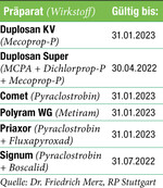 Das Bundesamt für Verbraucherschutz und Lebensmittelsicherheit hat die Zulassung von Pflanzenschutzmitteln, deren Zulassung durch Zeitablauf endete, vorläufig verlängert. Die betroffenen Mittel sind in der Tabelle aufgeführt.