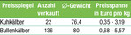 Mit einem erfreulich guten Auftrieb konnte die Herrenberger RBW-Auktion am 3. Februar aufwarten. Nicht nur die Quantität, auch die Qualität der Tiere wusste zu überzeugen. Die 22 Kuhkälber konnten zügig um durchschnittlich 2,70 Euro zugeschlagen werden und somit den Preis des Vormonats bestätigen. Bei durchschnittlich 76,4 kg wurden so pro Kopf gut 206 Euro erlöst. Die Bullenkälber wussten mit hoher Qualität zu überzeugen, nur zu schwere Tiere taten sich in der Preisfindung schwer. Kälber im optimalen Gewichtsbereich erzielten seit langem wieder Preise zum Teil deutlich über der Marke von 5 Euro. Im Schnitt über alle Tiere konnten 4,86 Euro pro kg beziehungsweise gut 350 Euro pro Tier erlöst werden.