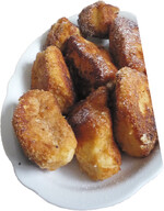 Zutaten 6 altbackene Milchbrötchen (mindestens vom Vortag) 2 Eier 1 Prise Salz etwas Zitronenschale 1 - 2 EL Zucker etwa ½ l Milch evtl. Semmelbrösel Fett zum Ausbacken Für die Soße: 250 ml trocknen Weißwein (oder guten Most) 2 Eigelb 30 - 40 g Zucker Schale einer ½ Zitrone 1 EL Speisestärke Zubereitung Von den Brötchen mit einer Reibe Brösel abreiben. Dann Ei, Zitronenschale, Zucker und Milch verquirlen, Brötchen halbieren und in die Flüssigkeit geben, wenden. So lange ziehen lassen, bis die Brötchen gut durchfeuchtet sind, vorsichtig herausnehmen, in dem Abgeriebenen wenden (falls es nicht reicht, noch Semmelbrösel verwenden). Brötchenhälften in heißem Fett in der Pfanne goldbraun ausbacken. Mit Zimtzucker oder Puderzucker bestreuen,...
