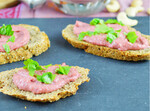 Zutaten 250 g ungesalzene Cashewkerne | 2 TL Salz 200 ml Sonnenblumenöl (oder zur Hälfte Sesamöl) 2 gegarte rote Bete (250 g) | frische Petersilie Zubereitung Cashewkerne mit Salz und Öl im Mixer sehr fein pürieren. Ist das Mus zu fest, noch etwas Öl zufügen. Anschließend die rote Bete gestückelt zufügen, weitermixen, abschmecken.