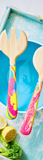 Langweilige Handyhüllen, der weiße Zahnputzbecher, Holz-Salatbesteck oder die alte Vase, Porzellan, das nur noch seine Daseinsberechtigung hatte, weil es irgendwann auf einem Polterabend zerdeppert worden wäre: All das kann ein zweites Leben bekommen, indem es durch ein Bad mit Marmorierfarbe gezogen wird.