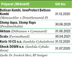 Das Bundesamt für Verbraucherschutz und Lebensmittelsicherheit hat die Zulassung von Pflanzenschutzmitteln verlängert, deren Zulassung durch Zeitablauf endete. Diese Verlängerungen gelten bis zur endgültigen Entscheidung über eine erneute Zulassung.
