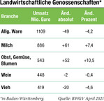 Die landwirtschaftlichen Genossenschaften in Baden-Württemberg kamen insgesamt mit stabilen Geschäften durch das Coronajahr 2020. Der Gesamtumsatz der 311 Agrargenossenschaften stieg leicht um 0,3 Prozent auf 3,7 Mrd. Euro. In den wichtigsten Sparten aber liefen die Geschäfte unterschiedlich, teilte der Baden-Württembergische Genossenschaftsverband (BWGV) mit.