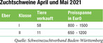 Der Schweinemarkt verzeichnete im April und Mai keine großen Bewegungen. Durch eine passable Nachfrage im Export, in der Ferkelerzeugung und der Besamung sowie ein qualitativ hochwertiges und stabiles Angebot der Zuchtbetriebe konnten sich die Verkaufszahlen der Eber im Vergleich zu den Vormonaten einigermaßen halten – allerdings auf einem niedrigen Niveau. Insgesamt wurden von den badenwürttembergischen Züchtern knapp 70 Jungeber zum Durchschnittspreis von 1203 Euro verkauft. Knapp zwei Drittel der Tiere gingen in andere Bundesländer sowie nach Belgien, Frankreich und Bosnien. In Klasse I wurden 58 Tiere bewertet und verkauft; durchweg typisiert, stressnegativ und mit hohen genomischen Zuchtwerten. Etliche Eber der Deutschen Landrasse...