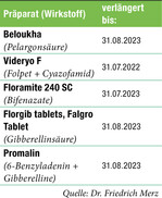 Weiter erlaubt Das Bundesamt für Verbraucherschutz und Lebensmittelsicherheit hat die Zulassung von Pflanzenschutzmitteln (Tabelle unten) vorläufig verlängert. | Dr. Friedrich Merz