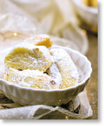 Zutaten 300 g Marzipan 300 g Mehl 200 g kalte Butter 100 g Puderzucker 2 Eier 2 EL Zitronensaft 8 Tropfen Bittermandelaroma und eine Prise Salz Zubereitung Die Butter in Stücke schneiden und die Eier trennen. Dann Mehl, Puderzucker, Butter und Eigelb mit der Prise Salz zu einem glatten Teig kneten. Zu einem Rechteck ausrollen und für zwei Stunden kalt stellen. Währenddessen die Marzipanrohmasse grob raspeln. Das geht am besten, wenn die Masse kalt ist. Marzipan mit den Eiweißen, Zitronensaft und Bittermandelaroma auf höchster Stufe zu einer cremigen Masse mixen. Den Mürbeteig in vier gleich große, lange Streifen schneiden. Diese auf der bemehlten Arbeitsfläche jeweils der Länge nach ausrollen, bis jeder Streifen etwa drei Millimeter dick...