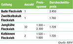 Auf der RBW-Auktion am 24. November kamen neben drei Bullen, 32 Jungkühe, einer Zweitkalbskuh, zwei hochtragende Kalbinnen sowie 55 Kuh- und 310 Bullenkälber zum Verkauf. Zwei männliche und drei weibliche Fresser komplettierten das Angebot. Bis auf zwei Bullen wurde der Markt zügig und zu guten Preisen geräumt. Fleckvieh: Gleich mehrere Kunden konzentrierten sich auf den Spitzenbullen, einen Hayabusa-Sohn aus einer Mirolo-Tochter gezogen, der vom Betrieb Klenk aus Kirchberg-Dörrmenz zum Verkauf angeboten wurde und 2450 Euro erlöste. Die 32 Jungkühe erreichten nicht ganz das hohe Preisniveau der Vorauktion. Angeführt wurde die Kollektion von zwei Waban-Töchtern vom Zuchtbetrieb Stier, Untermünkheim-Schönenberg, die für 2000 und für 2040...