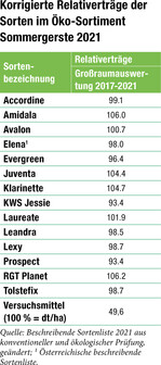 In der letzten BWagrar-Ausgabe (2/22) wurden in der Rubrik Ackerbau die Ergebnisse der Landessortenversuche (LSV) von Öko-Sommergerste veröffentlicht. Hierfür waren die Eigenschaften und Erträge der geprüften Sorten in einer Tabelle zusammengefasst dargestellt. Leider hat sich bei der Übertragung der Daten ein Fehler ins Heft eingeschlichen. Die Zahlen der letzten Spalte, die Relativerträge der Großraumauswertung von 2017 bis 2021, waren nicht korrekt eingetragen. Bitte entschuldigen Sie dies. Den Fehler möchten wir hiermit korrigieren. In der untenstehenden Tabelle finden Sie die korrekten Zahlen der Großraumauswertung zu den jeweiligen Sommergerste-Sorten. Die gesamte korrigierte Tabelle und der vollständige Artikel zu den LSV...