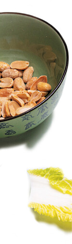 Zutaten 2 EL Erdnussöl ½ TL Kurkuma 1 Prise Cayennepfeffer 180 ml Kokosmilch (aus der Dose) 1 TL Meersalz ½ EL Agavensirup 2 EL frisch gepresster Limettensaft 1 kleiner Chinakohl 1 rote Spitzpaprika 1 Möhre 3 Stängel Koriander 150 g Räucher-Tofu (zum Beispiel Mandel Sesam) 1 EL Erdnüsse