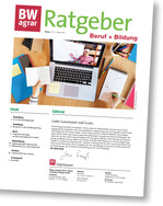 Mit dem Schulabschluss in der Tasche kann es losgehen. Ob Ausbildung, weiterführende Schule oder Studium, nie war das Angebot an Möglichkeiten größer. Das zeigen auch die jungen Berufseinsteiger, die in unserem Ratgeber Beruf+Bildung, der kommende Woche BWagrar beiliegt, von ihren ersten Erfahrungen berichten. Sie haben alle spannende Aufgaben und nehmen die Herausforderung ihres Jobs täglich neu an. Die Eintrittspforte für den Traumjob ist neben der Bewerbung auch immer das persönliche Gespräch. Hier gilt es zu überzeugen. Auch dazu haben wir Tipps. Und weil man irgendwie nie fertig ist mit dem Lernen, stellen wir spannende Weiterbildungen vor. Beispielsweise zum qualifizierten Lernort Bauernhof-Betrieb. In Kürze starten hier wieder neue...
