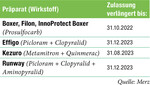 Das Bundesamt für Verbraucherschutz und Lebensmittelsicherheit hat die Zulassung von Pflanzenschutzmitteln vorerst verlängert. Die Zulassung der betroffenen Pflanzenschutzmittel hätte sonst durch Zeitablauf geendet. Zulassungsverlängerungen werden bis zur endgültigen Entscheidung über eine erneute Zulassung erteilt. In der Tabelle sind betroffene Mittel aufgeführt. | Dr. Friedrich Merz, Regierungspräsidium Stuttgart